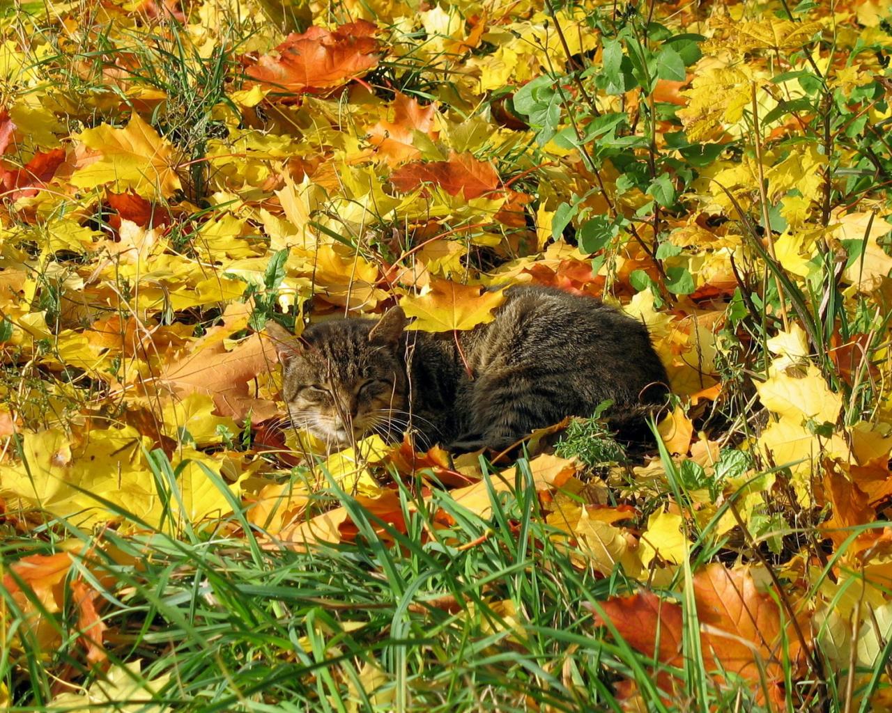 Кот, осень, листья, природа обои для рабочего стола, картинки, фото, 1280x1024. | ||||||||||||||||