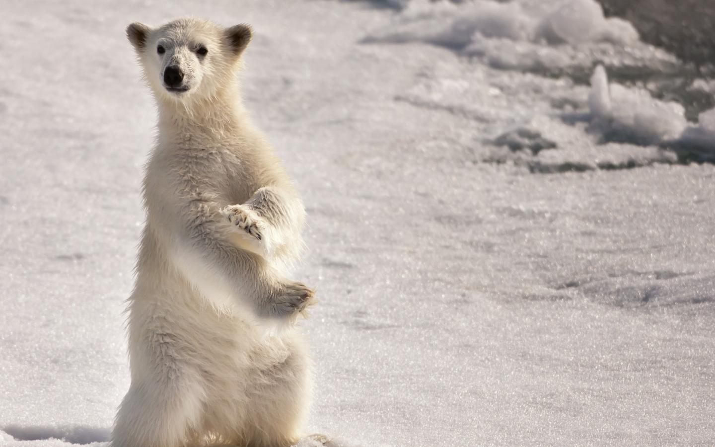 Медведь, поза, снег обои для рабочего стола, картинки, фото, 1440x900. | ||||||||||||||||