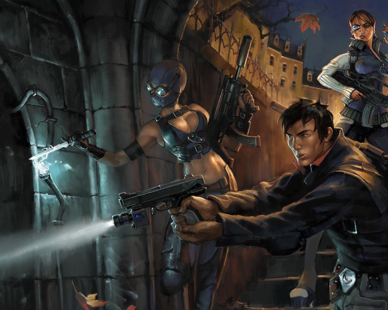 Трое вооруженных следопытов - скачать обои для рабочего стола, картинки, фото, 1280x1024. | ||||||||||||||||||||||