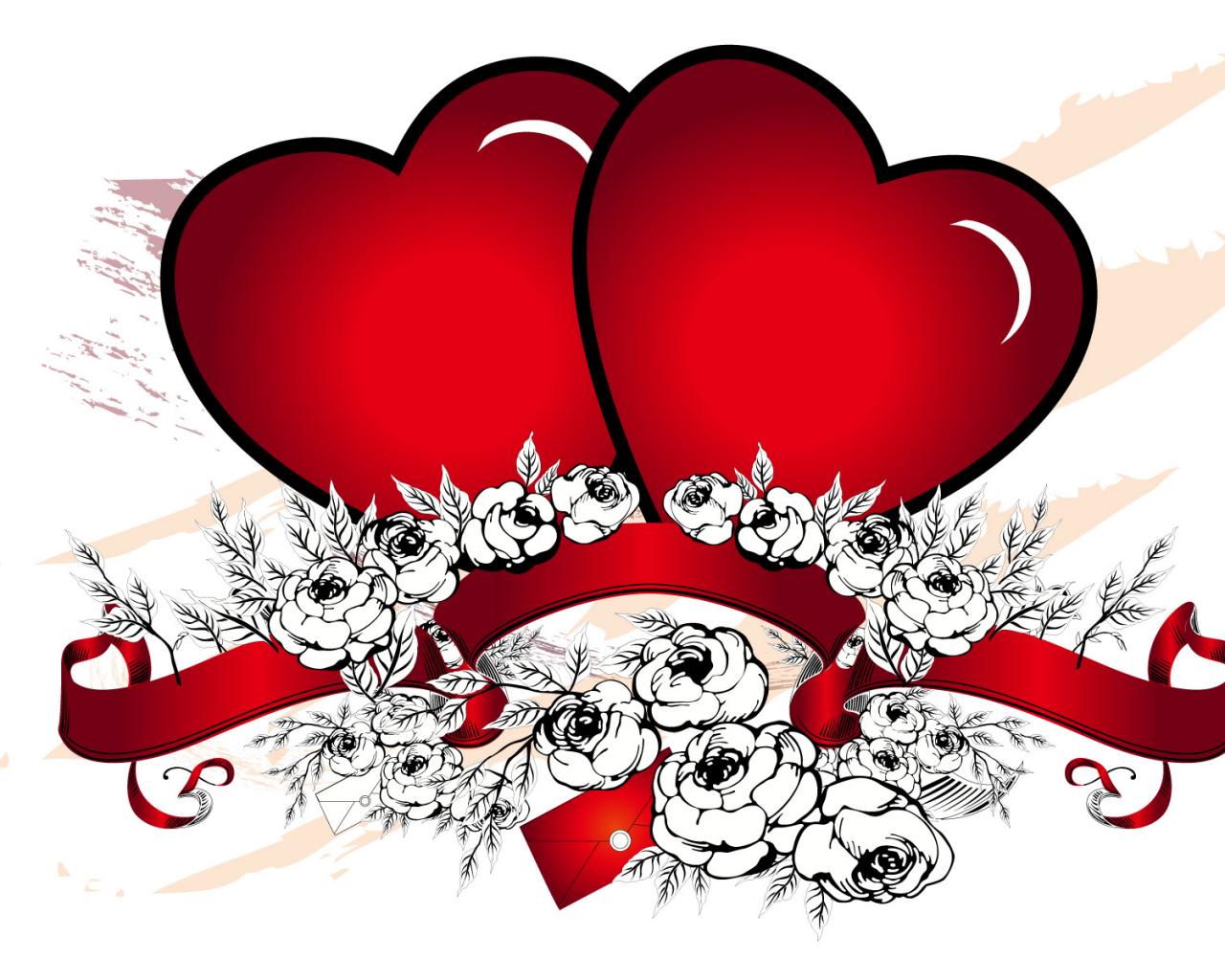 Розы и Красные сердца обои для рабочего стола, картинки, фото, 1280x1024. | ||||||||||||||||