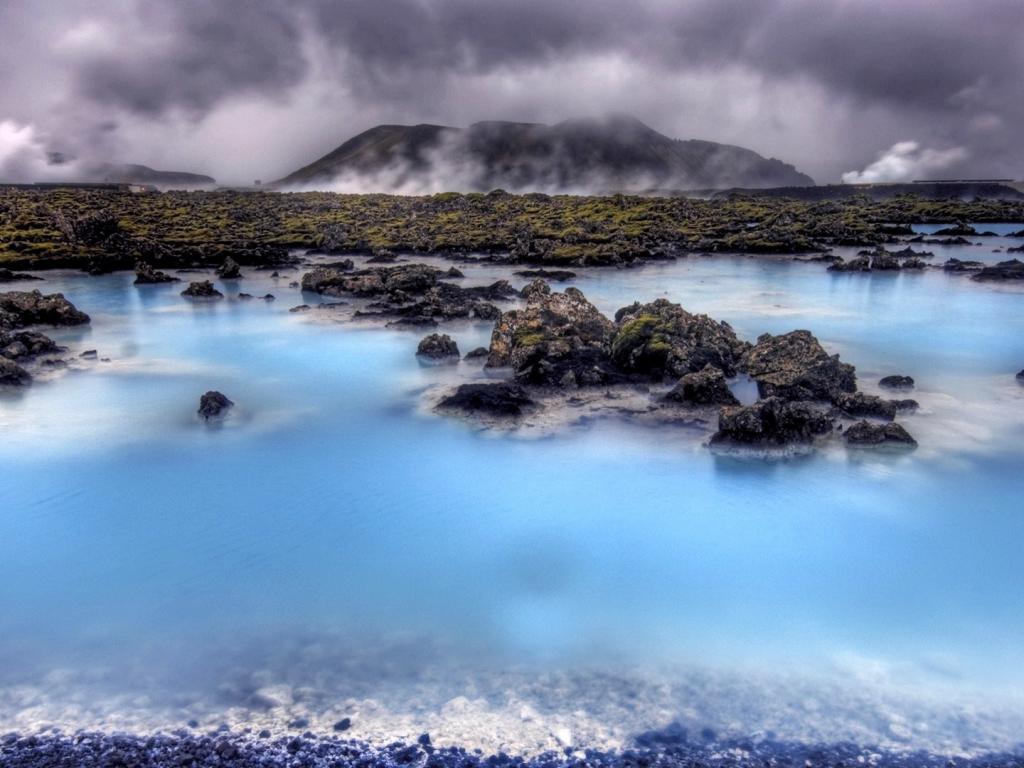 Вулкан, камни, вода обои для рабочего стола, картинки, фото, 1024x768. | ||||||||||||||||